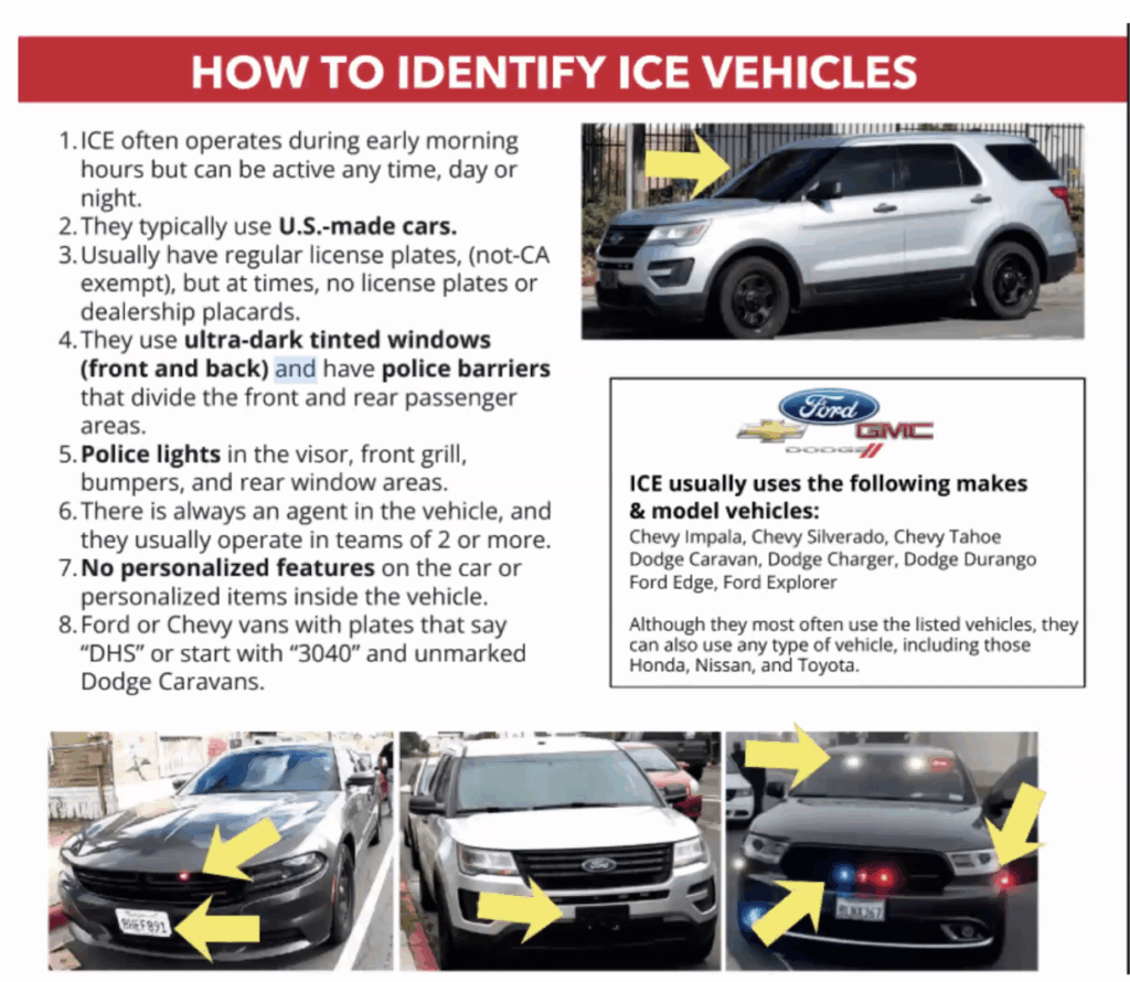 Below is a graphic about how to recognize and avoid ICE vehicles.
